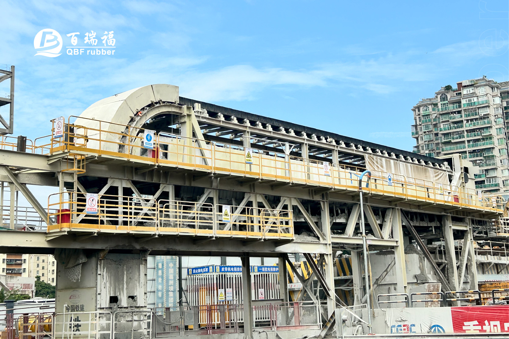 The customized S400 B1800 TCS360 anti-stick Sidewall Belt — developed by QBF Rubber for the Shenzhen Tunnel Project — is now under installation! With a total length of 190m, this high-performance non-stick belt is set to play a crucial role in ensuring smooth and efficient tunnel construction.