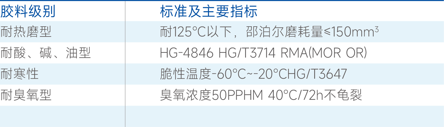 ■ 橡胶与钢丝绳附着力好:钢丝绳表面采用镀锌处理,同时采用与钢丝绳有优良粘合性能的胶料,与钢丝绳粘合在一起,耐冲击、不易剥落,使用寿命长;