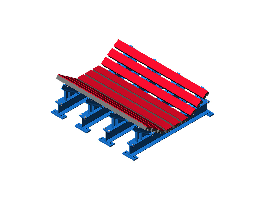 缓冲床用于带式输送机装载点的输送带支撑,可代替装载部位的缓冲托辊,更适用于落料点落差比较高、物料大小及冲击力不均匀、落料密度大、频率高并希望改善落料区域密封状况的工作场合。